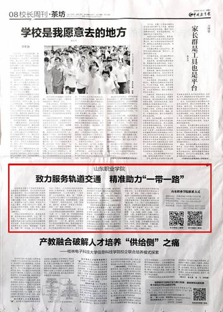 近日,中國教育報以《致力服務軌道交通,精準助力“一帶一路”》為題,報道了我院發揮特色優勢,在服務國家軌道交通事業和山東省新舊動能轉換重大工程,助力國家“一帶一路”建設等方面的積極做法。