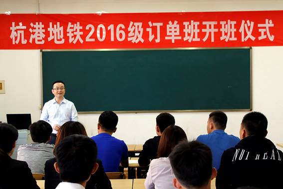 會上,雙方簽署了校企合作協議。洽談結束后,杭港地鐵舉行了2016級訂單班開班儀式,賈尚斌、沈建龍為訂單班學生介紹了杭港地鐵有限公司及杭港地鐵建設規劃基本情況,對同學們在校期間的學習生活提出要求,并就同學們關心的工作實習問題進行了答疑解惑。