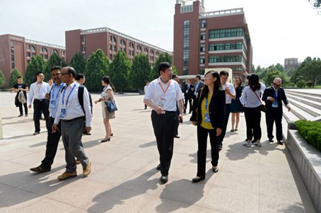 今年6月9日至10日,上海合作組織成員國元首理事會第十八次會議將在山東青島舉行。作為我國重要的主場外交活動之一,上合峰會備受矚目。5月29日,中國工會“一帶一路”人文交流——上合組織國家職工技能交流營代表團一行27人在中國職工對外交流中心國際聯絡處處長何際霞、副處長毛麗娜,山東省總工會副主席李臻,山東職工對外交流中心主任白明的陪同下,到我院參觀訪問。山東省委教育工委委員,省教育廳副廳長、黨組成員白皓,學院黨委書記王榮昌、院長秦河等陪同參觀。