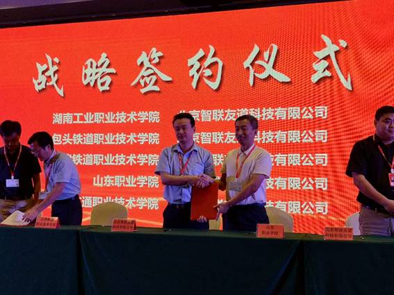 9月2日,副院長郭鵬赴京參加了由北京智聯友道科技有限公司(以下簡稱“智聯友道”)牽頭主辦的2018年全國軌道交通協會校企合作協同育人高峰論壇暨中國通信工業協會軌道交通產教聯盟成立大會。期間,郭鵬代表學院與智聯友道簽署了戰略合作協議,并在大會上分享了我院集團化辦學經驗。