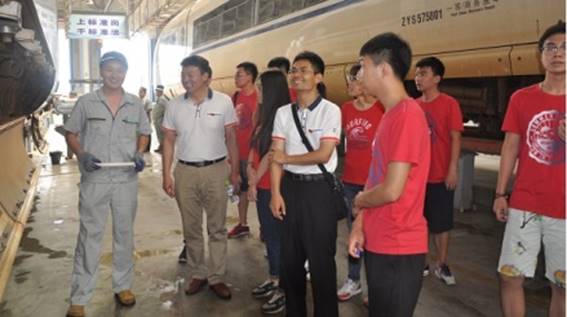暑假期間,城市軌道交通系開展了一系列社會實踐活動。7月8日至10日,社會實踐小組前往青島動車段濟南動車組運用所開展了為期三天的交流學習。系黨總支書記郭亭、團總支書記殷巖鋒、城市軌道交通車輛專業臧勝超老師和參加實踐的同學們一同前往。在濟南動車所,隊員們學習了解了該所規章制度、員工狀況、工作分類、動車應急處理、系統維護完善等方面內容。期間,該所職工、鐵道機車車輛專業2011屆畢業生劉昭還為大家講解了動車的零部件、受電弓、廂內座椅等方面的檢測維修工作。活動同時,郭亭書記帶領實踐小組的師生們與動車所的領導和部分員工還開展了“兩學一做”學習交流會。郭亭表示,此次社會實踐活動收獲頗豐,希望雙方在未來的校企合作方面進一步加強聯系和合作。