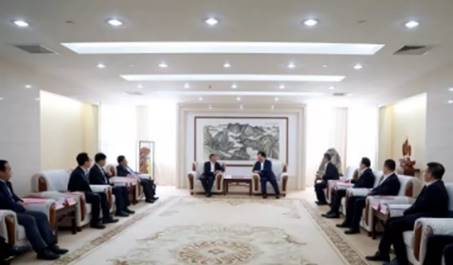 在簽約儀式之前,鄭德雁會見了中車青島四方車輛研究所有限公司董事長孔軍、中車山東機車車輛有限公司總經理李廣偉一行,濟南軌道交通集團黨委書記、董事長陳思斌參加會見。
