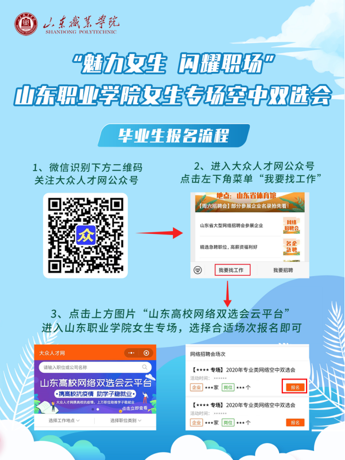 山東職業學院女生專場空中雙選會畢業生報名流程 手機端