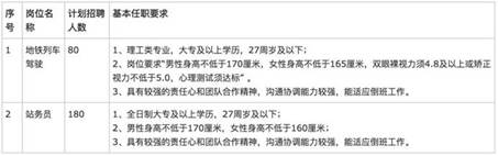 5、站務管理崗位要求“男生身高不低于170厘米,女生身高不低于160厘米”;地鐵列車駕駛崗位要求“男生身高不低于170厘米,女生身高不低于165厘米,雙眼裸視力須4.8及以上或矯正視力不低于5.0,心理測試須達標” ;