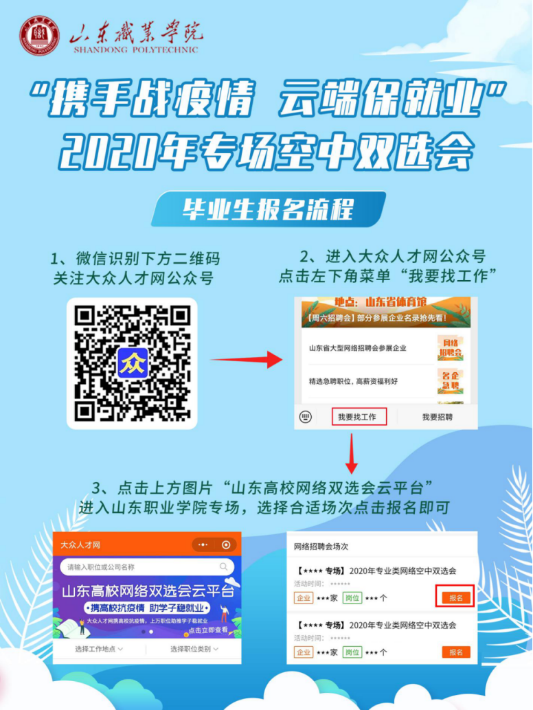 山東職業學院2020年11月份專場空中雙選會畢業生報名流程