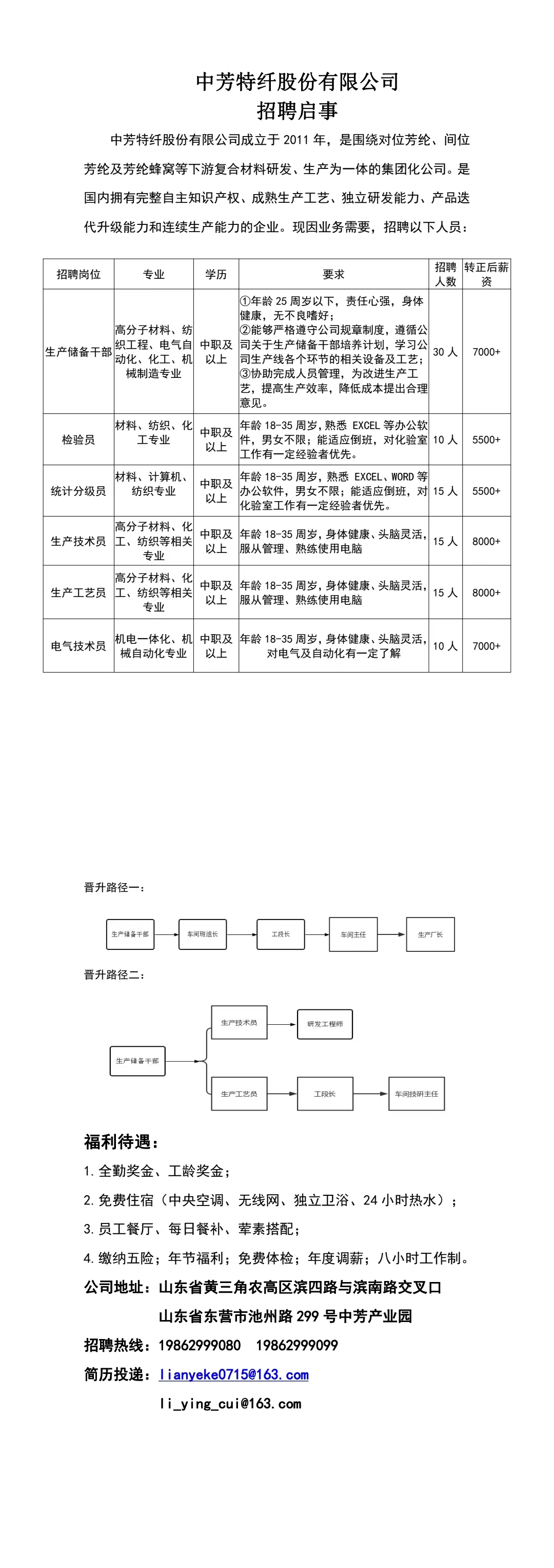 中芳特纖股份有限公司招聘簡章