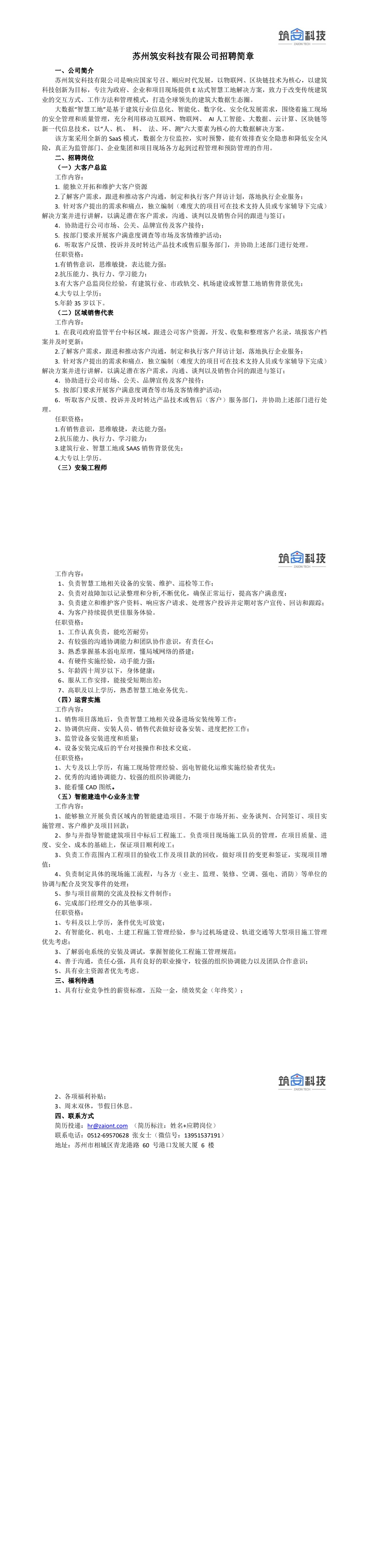 蘇州筑安科技有限公司招聘簡章