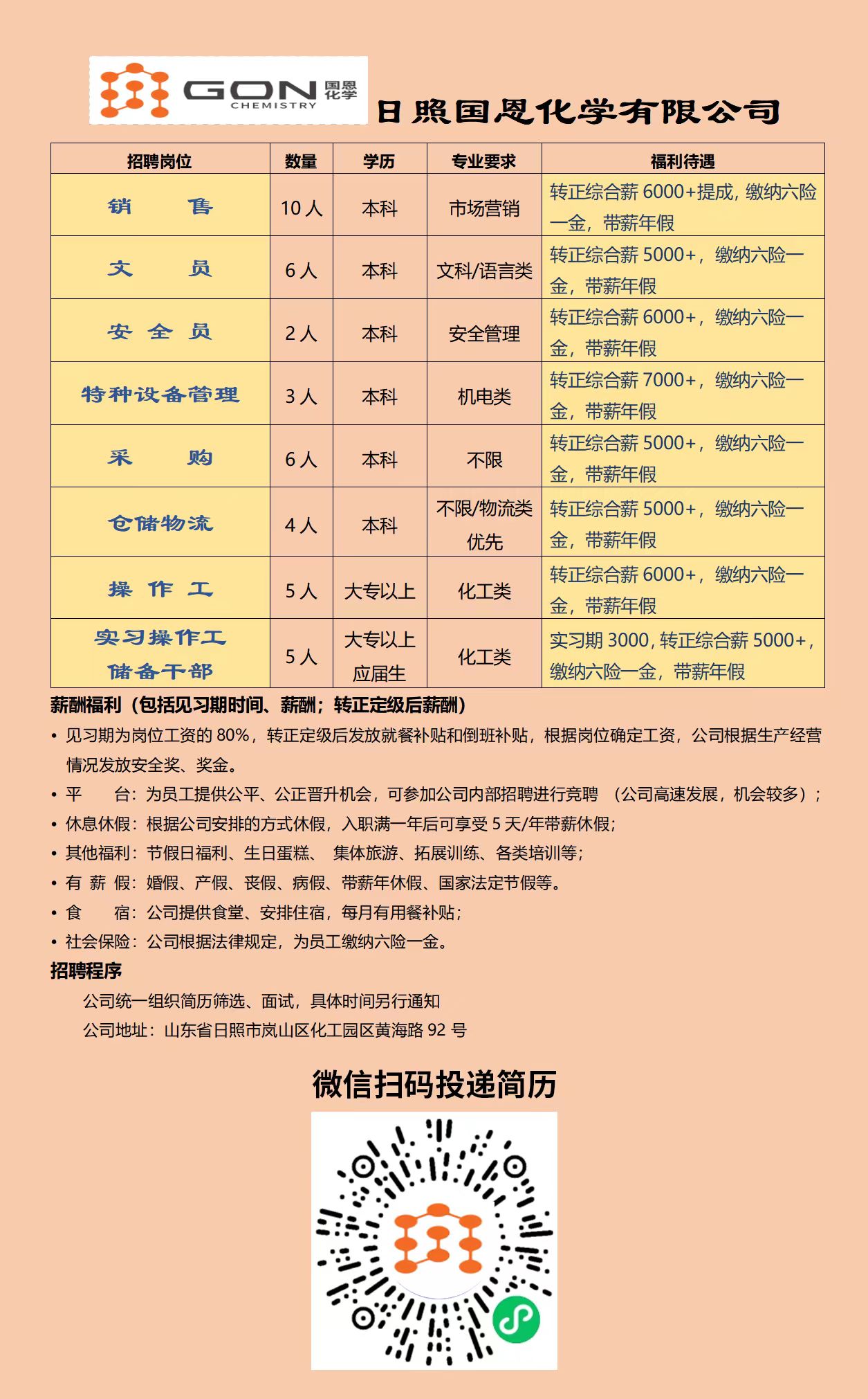 日照國恩化學有限公司招聘簡章