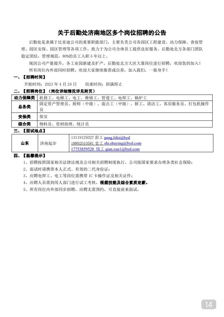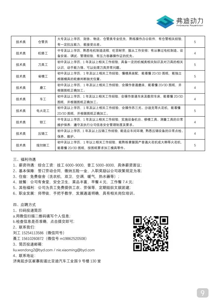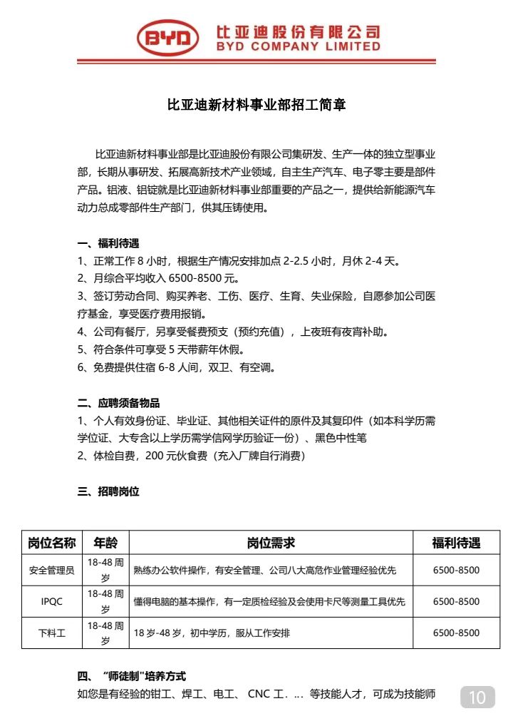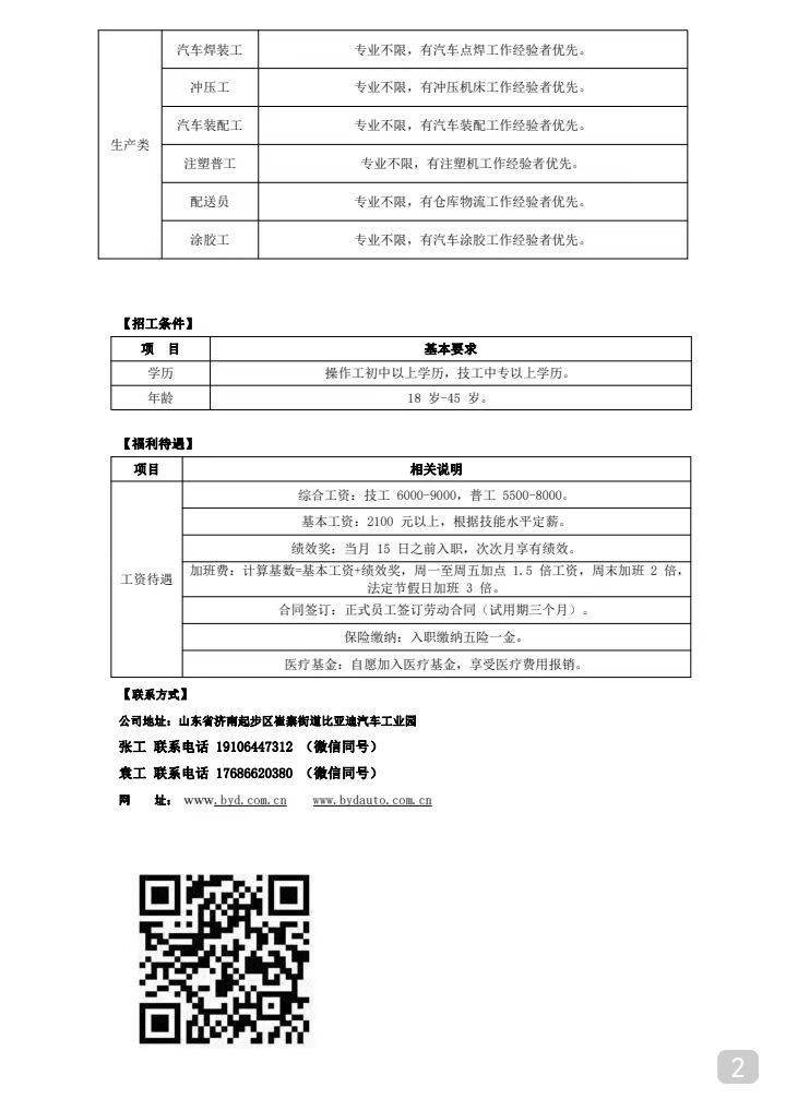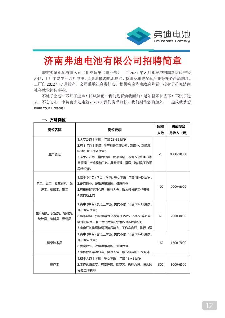 比亞迪股份有限公司(濟南)招聘簡章