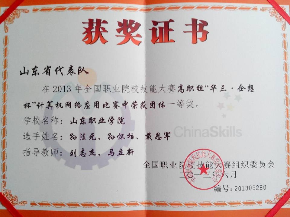 山東職業學院勇奪2013全國技能大賽計算機網絡應用賽項全國冠軍
