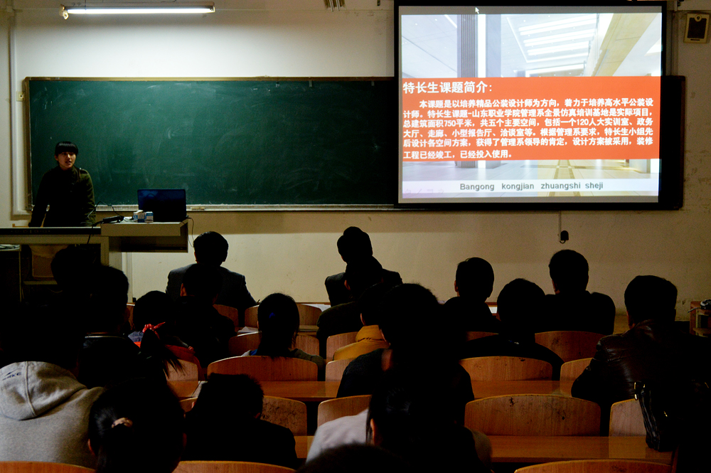 日前,山東職業學院在4104教室進行了“學院2012年度特長生課題展示評議”活動,學院黨委副書記、常務副院長馬文卿代表院領導出席了展示活動,學院學術委員會成員14人擔任評委并參加活動。