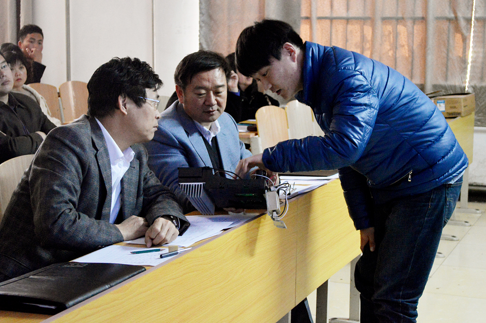 每個課題由一名特長生代表對課題進行展示匯報。評委認真聽取匯報,從課題選題、課題的實施過程、成果形式、匯報材料的組織和表達能力五個方面對課題進行了綜合評定和賦分,工作人員現場統計合分,依據得分由高到低推出一等獎2項,二等獎4項,三等獎10項。電氣系賈俊剛老師指導的“利民制藥廠車間空調自控系統設計”、信息系郭娟老師指導的“二維動畫制作”獲得一等獎;機電系譚吉升老師指導的“廢舊電線抻直機的設計、安裝與調試”、土木系畢建波老師指導的“辦公空間裝飾設計”、土木系李增足老師指導的“變頻空調器常見故障診斷與維修”、信息系牛文琦老師指導的“iPhone開發”課題獲得二等獎,其它課題獲三等獎。