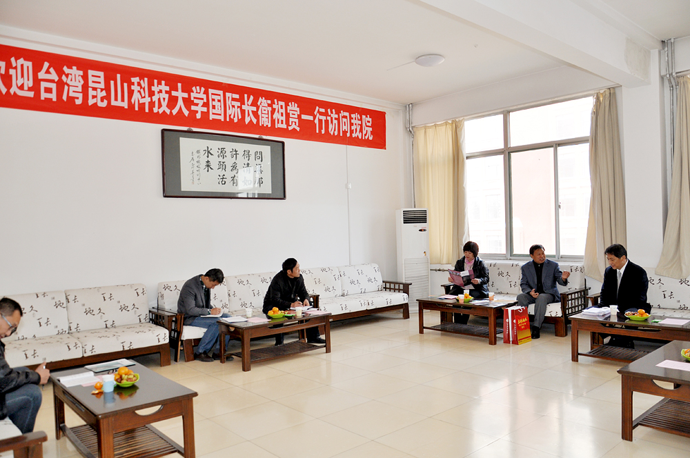 11月12日上午,臺灣昆山科技大學國際長衛祖賞、推廣教育中心組長張培華一行二人來我院訪問。山東職業學院黨委書記劉邦治,院長鄧洪基,黨委副書記、常務副院長馬文卿,副院長祝瑞花出席接待。 會談中,黨委書記劉邦治與衛祖賞國際長分別介紹了雙方院校的發展概況,并表達了兩校開展實質性合作的愿望。隨后,雙方就師資培訓和交換生等方面的合作具體事宜進行了深入商討,并達成了初步共識。衛祖賞表示,希望今后兩校進一步加強聯系和溝通,在更多層面和領域開展互利雙贏的交流合作。 本次臺灣昆山科技大學領導的來訪,是對上半年山東職業學院黨委書記劉邦治隨教育廳考察團赴臺進行教育考察時與昆山科技大學校長蘇炎坤簽署《合作協議書》的進一步跟進,不僅促進了兩校之間更深層次的了解,更對日后的合作打下了堅實的基礎。 山東職業學院組織人事處處長崔君清,教務科研處處長郭鵬,國際交流中心主任王輝陪同接待了來賓。