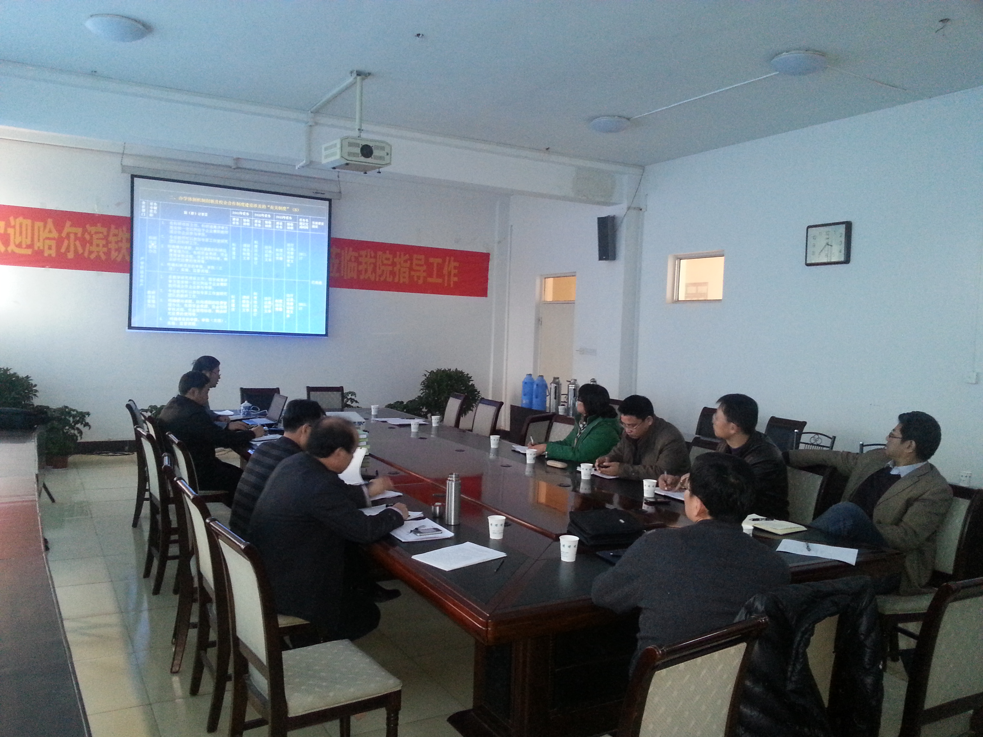 11月26日下午2點在辦公樓4樓會議室召開骨干院校建設(項目一)階段總結及推進會.,會議由組織人事處處長崔君清主持,參會人員有辦公室、國際交流中心、教務處、財務處、產學研、督導室、成教處、管理系、組織人事處、招就辦負責人及相關材料負責人參加。
