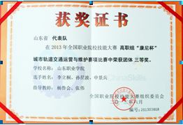 2013年6月17至21日,全國職業院校技能大賽高職組“康尼杯”城市軌道交通運營與維護賽項在南京賽區舉行。在領隊軌道交通學院副院長吳書鋒和指導老師楊魯會、張偉的帶領下,軌道交通學院參賽選手李立桐、孫星波、申景兵憑借扎實的基本功底和較好的臨場發揮取得第十名好成績,榮獲本賽項三等獎,為學院爭得了榮譽。