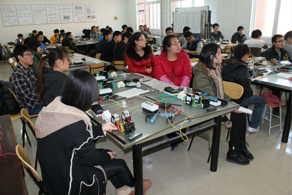 2013年11月30日,軌道交通學院組織2012級考生進行了第一批電工證實際操作考試,主要考查同學們連接雙重互鎖電動機正反轉控制電路和觸電急救人工操作的實際能力。