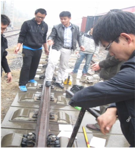 為使鐵道工程技術專業學生學習最新的高速鐵路知識,開闊視野,2013年11月9日,土木工程系邀請濟南西工務段高速鐵路養護維修車間支洋主任對11級鐵工、高鐵專業學生做了高鐵施工學術講座,并在鐵路養護維修實訓場進行了現場教學。