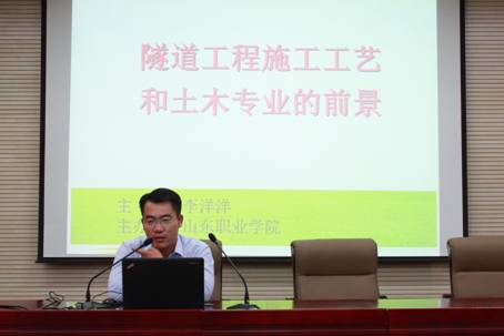 報告會共分兩部分,第一部分李洋洋結合自身近幾年施工的隧道工程項目,講述了隧道從邊仰坡施工、隧道進洞、初期支護、隧道防排水、二次襯砌等隧道主要施工工藝流程、常用開挖方法及隧道施工中的幾個關鍵控制要點。第二部分介紹了他在工程項目管理中接觸的高職專業學生在專業知識和技能操作方面的明顯優勢,以及高職學生在工程單位應該如何定位自己,發展自己的幾點注意事項;為學生的職業規劃提出了十分忠懇的建議。