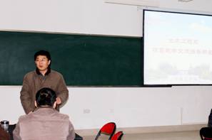 郭兆軍在會上指出,學院在建設國家骨干院校的進程中高度重視課程項目改革建設,土木工程系積極配合學院教學安排,通過選派教師到德國、新加坡、香港、杭州等地培訓學習和參加聆聽戴士弘教授項目教學專題講座等學習先進經驗,并在系內日常教學過程中大膽嘗試,多次召開教學交流會研討會等方式促進課改進程。郭兆軍希望全系教師要在教學中不斷總結好的經驗和方法,通過類似的講座形式與大家交流分享,力爭走出一條課程教學新路子。
