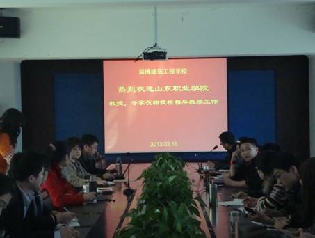 2013316星期六,土木工程系郭兆軍、步文萍、張風琴、王靜到淄博建筑工程學校,應邀參加建筑工程施工專業“行動導向教學”教學設計研討會。
