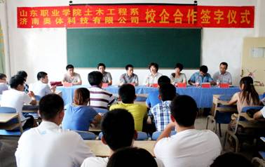 祝院長對濟南奧體科技有限公司經理范友忠一行表示歡迎,對學院發展歷程、辦學特色、骨干校建設等情況作簡要介紹。她指出,此次簽約合作有助于學院通過對企業需求人才的了解改進教學,充分利用學院和企業不同教學環境和教學資源以及在人才培養方面的優勢,把書本知識和實踐能力為主的生產、實踐經驗、科研有機的結合起來,這種合作共贏的方式既是對教學改革的一個促進,也是對培養企業需求人才的一個捷徑。