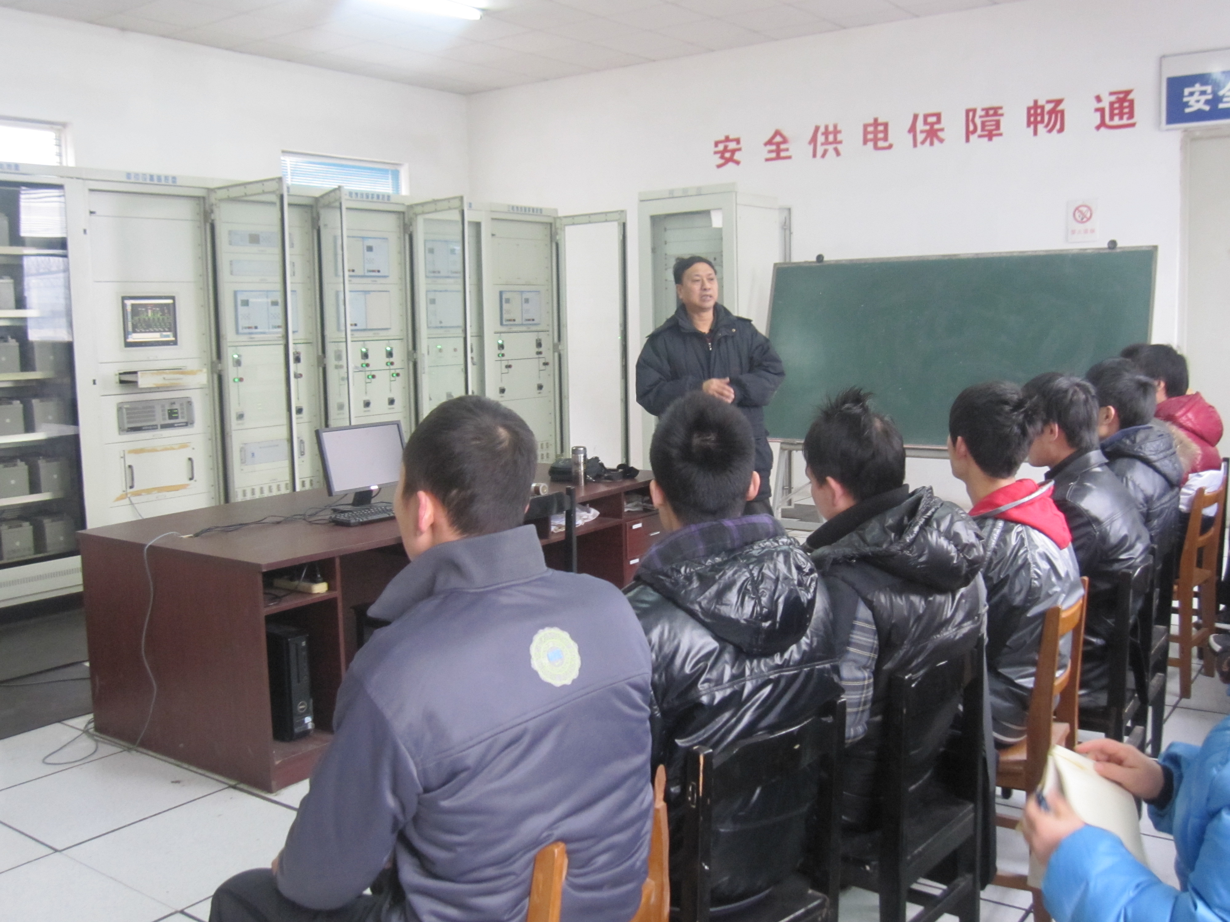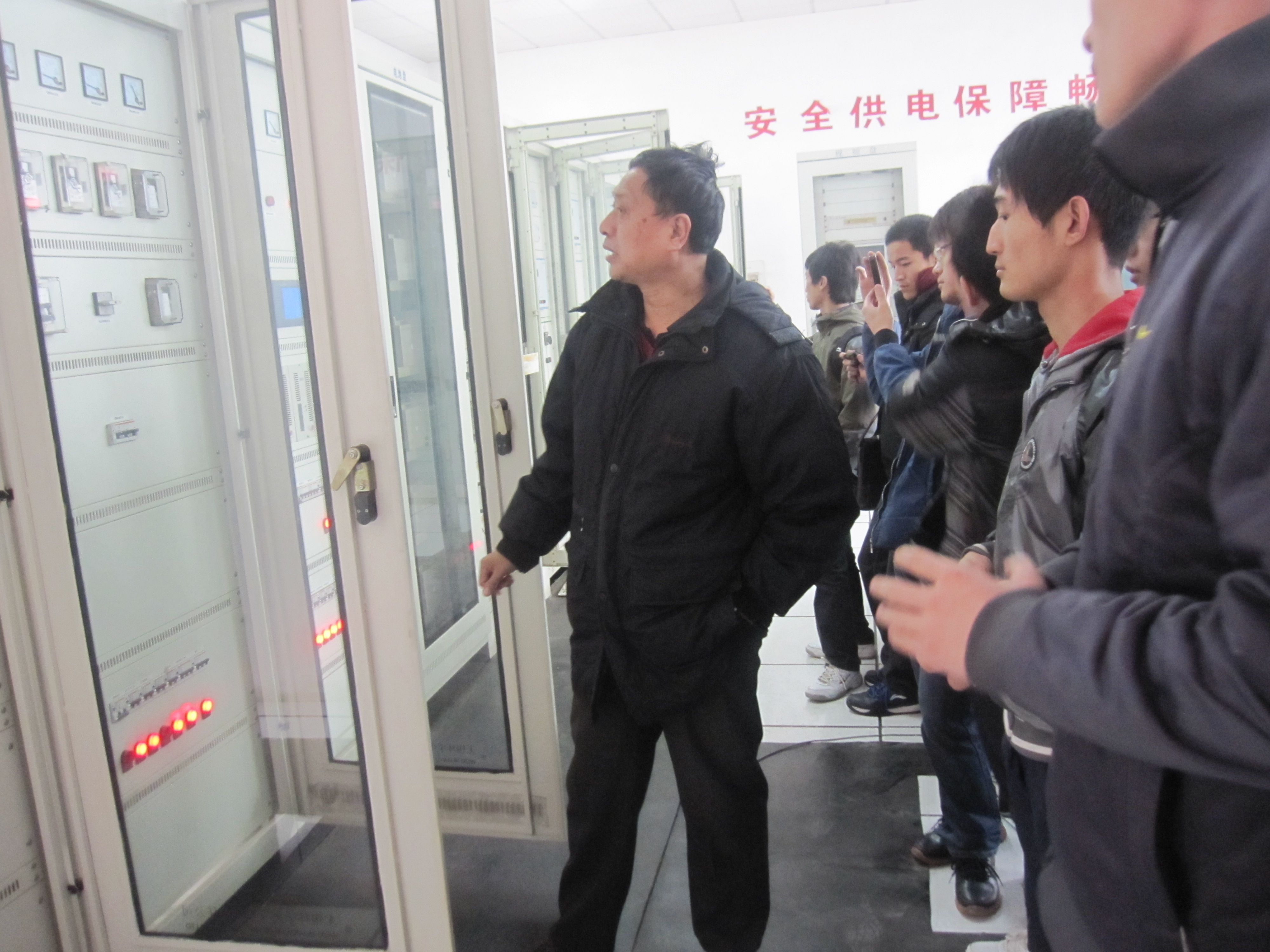 濟南火車站教育處張志亮工程師詳細講解了開閉所的控制間、高壓間的設備,并指導我們動手操作保護接控盤、直流盤、交流盤、斷路器、高壓隔離開關等,斷路器操作時巨大的響聲,使同學們感受到了工作現場的震撼。此次現場教學加強了學生們對專業知識的感性認識,促進學生將課本上的知識與實踐操作有效結合。