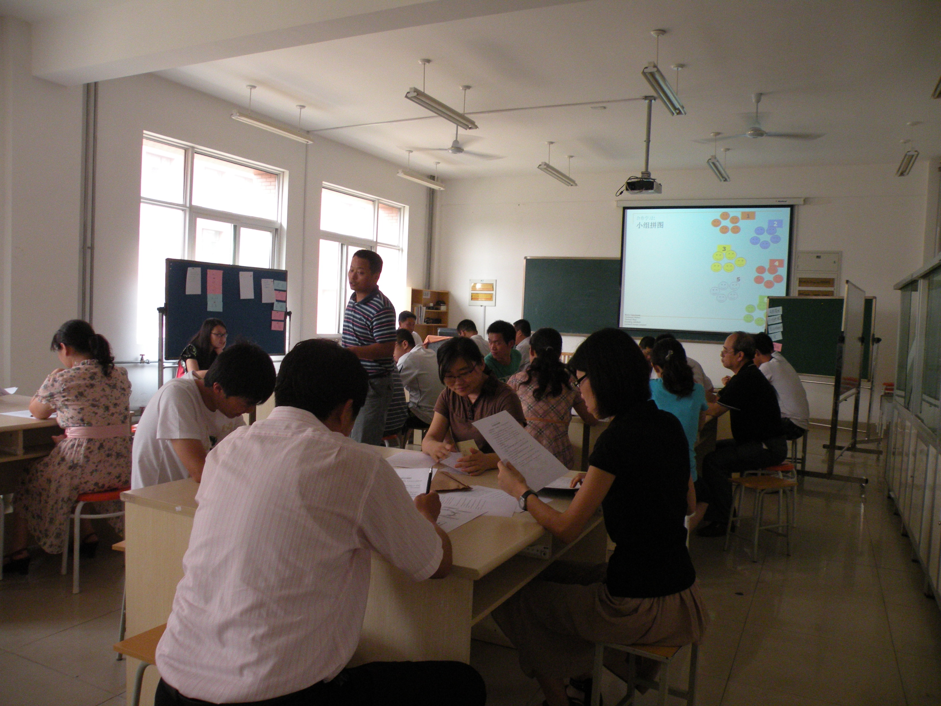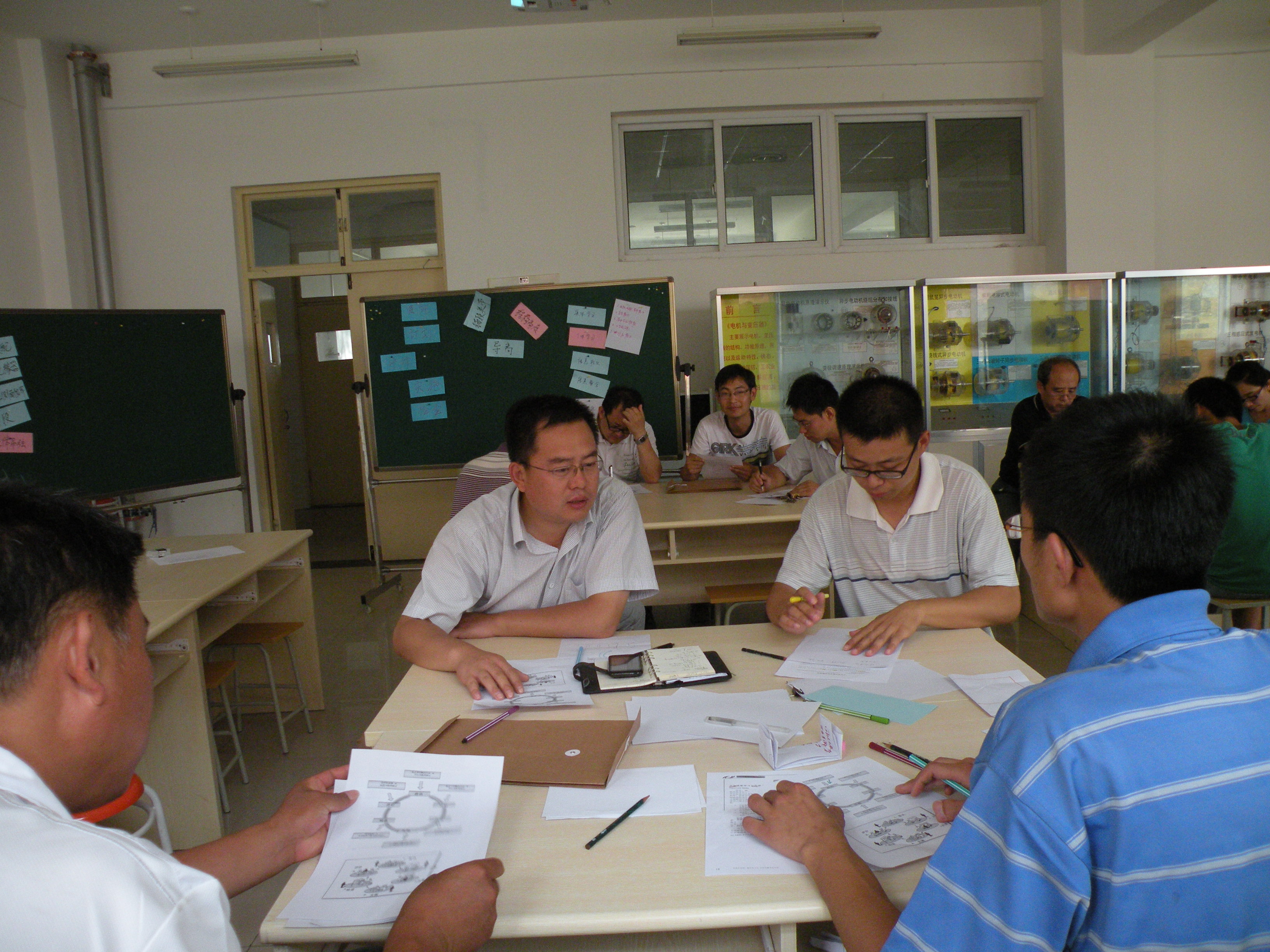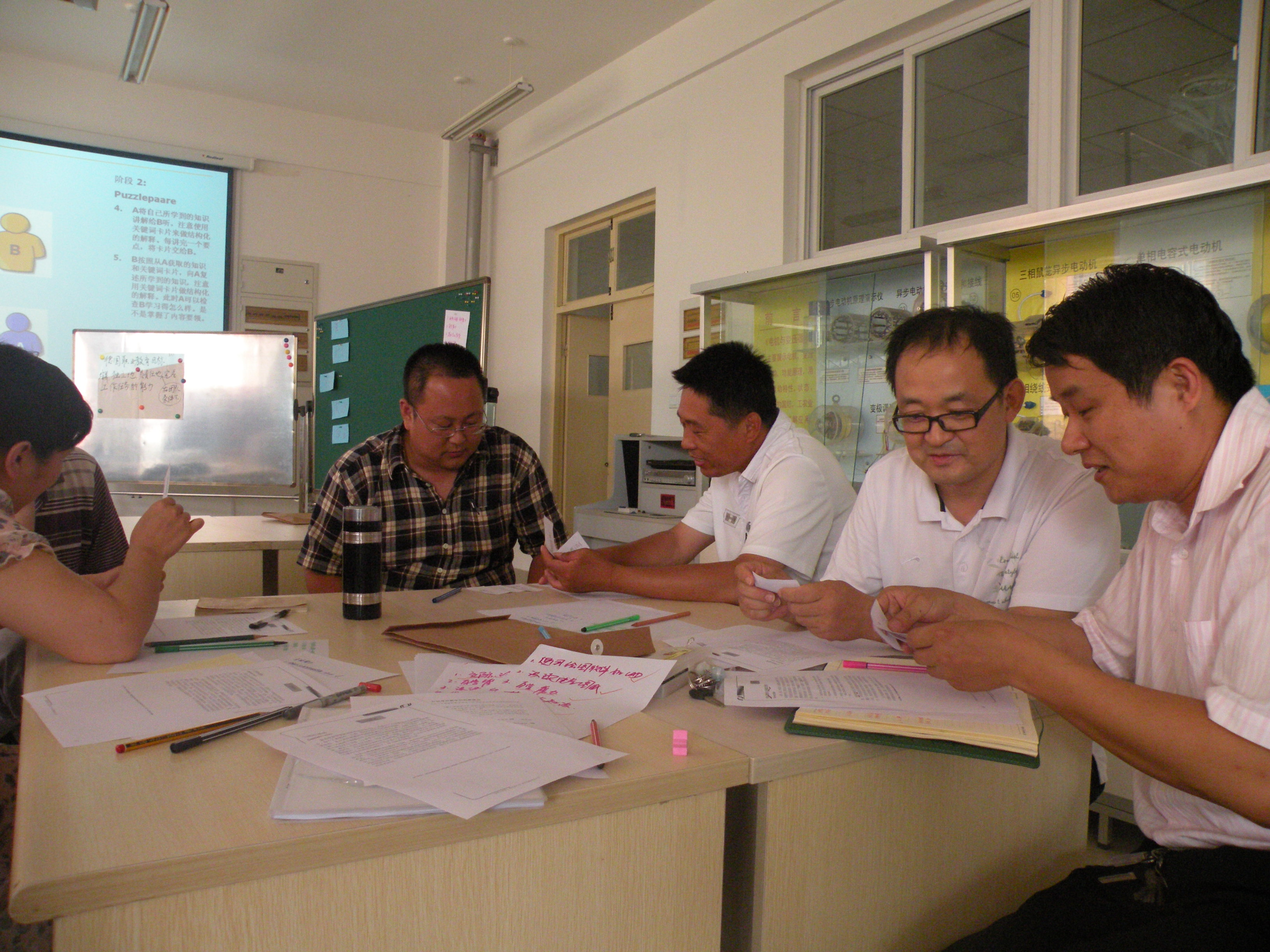 示范課按照“德國行動導向教學法”開展,課堂上所有人員分成多個小組,通過課堂實踐,深入學習了拓展小組、旋轉木馬學習、伙伴拼圖學習、小組拼圖學習、卡片復習法等行動導向教學方法。