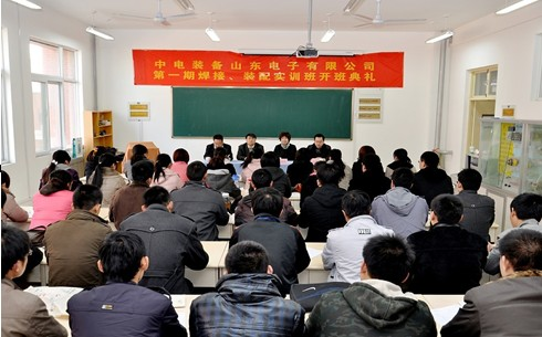2011年3月22日,山東職業學院電子信息項目組受中電裝備山東電子有限公司委托的第一期電子焊接、裝配培訓班隆重開班。本次培訓是中電裝備山東電子公司第一期在山東職業學院舉辦的優秀人才培訓班,歷時2個月,計劃培訓新員工2期,共100人。培訓過程立足于電子儀器儀表生產行業一線員工理論與技能培訓,圍繞生產過程中的核心技術,培養員工協同工作能力及實踐操作水平,使員工具備良好的職業能力和職業素養,并能夠在培訓結束后具備相應的專業能力、方法能力和社會能力。