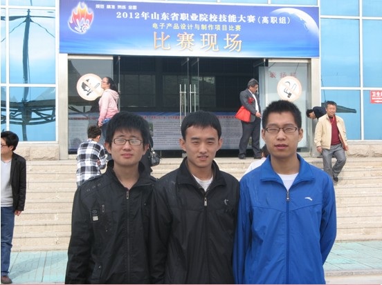 2012年4月20日至2012年4月23日,電氣工程系應用電子技術專業三名學生(胡志鵬、趙衍彬、張文東)參加了由濰坊工程職業學院(青州)承辦的2012山東省高職院校職業技能競賽電子產品設計與制作項目的比賽。本次競賽由樊廷忠老師任領隊,翟慶一和鄭淑軍老師任指導教師。