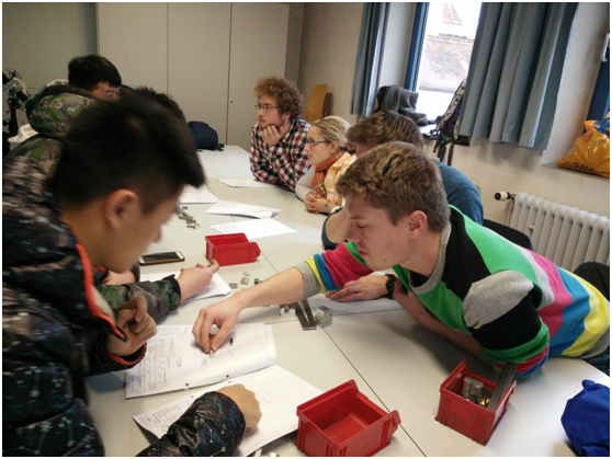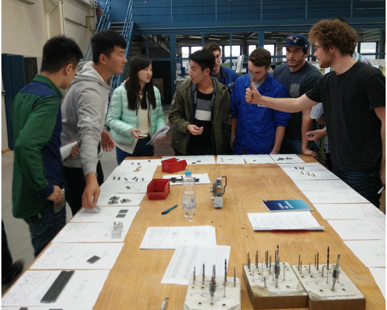 項目合作以車床模型的設計與制作為載體,德中學生三個人為一個小組合作進行車床模型項目的設計、零件加工、鉆孔、裝配、電路設計及焊接、整體調試等整個過程,在雙方老師的幫助下,學生克服交流困難,成功完成整個項目的合作,并且在這個過程中還相互學習到很多更好的解決問題的方法。