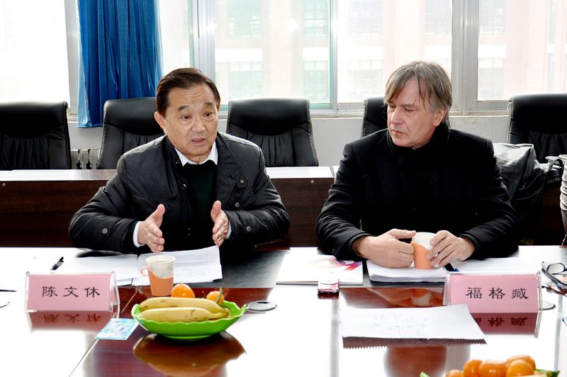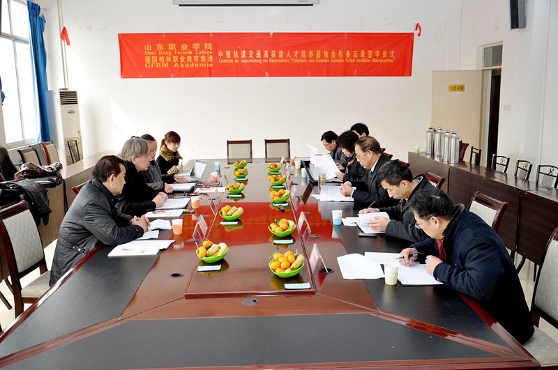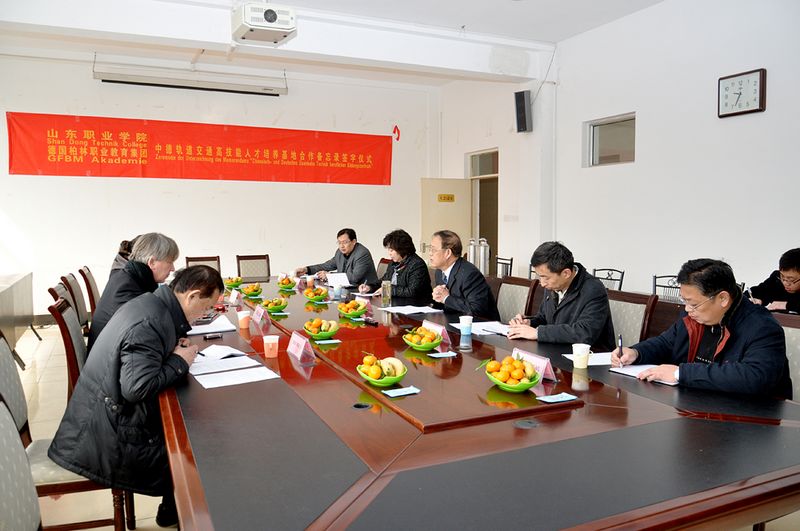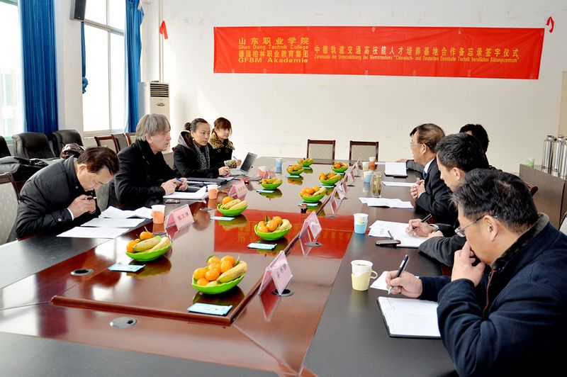 福格臧先生在簽字會談期間就德國柏林職業教育集團業務情況作了簡要說明,就“中德軌道交通高技能人才培養基地”建設合作項目通過圖表、數據等形式作了細致講解。他表示,德國“雙元制”職業教育體系重在政府主導,行業、企業共同參與。此次與學院簽署德中軌道交通高技能人才培養基地合作建設備忘錄,在接下來的工作中,德國柏林職業教育集團將有針對性的挑選適合基地合作建設的德國企業,與學院共同研究、制定基地建設方案,探討國際間校企合作新模式。