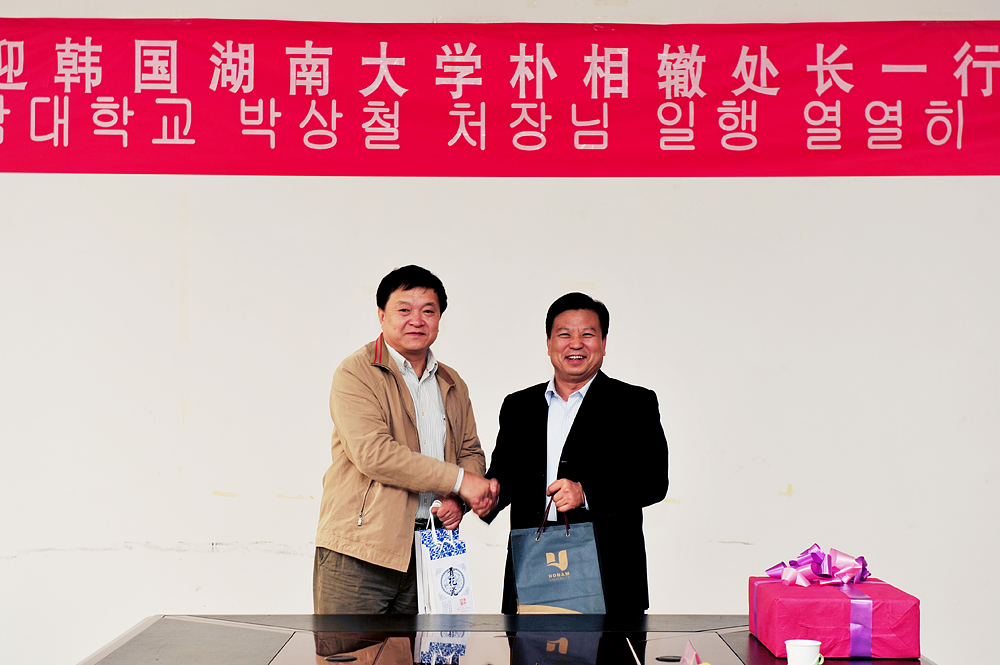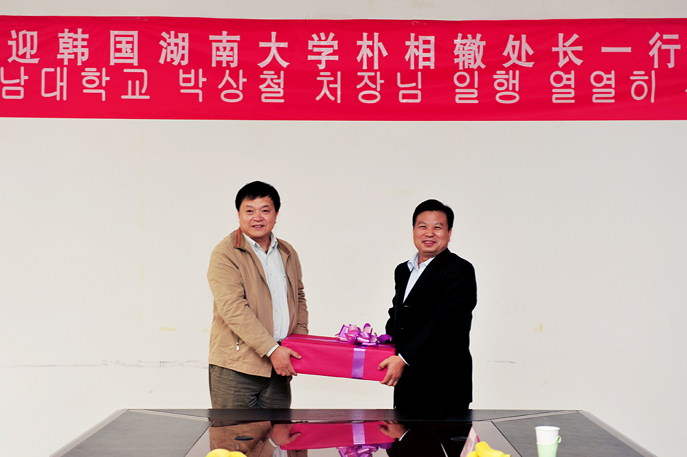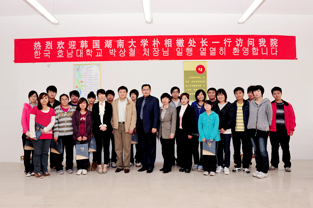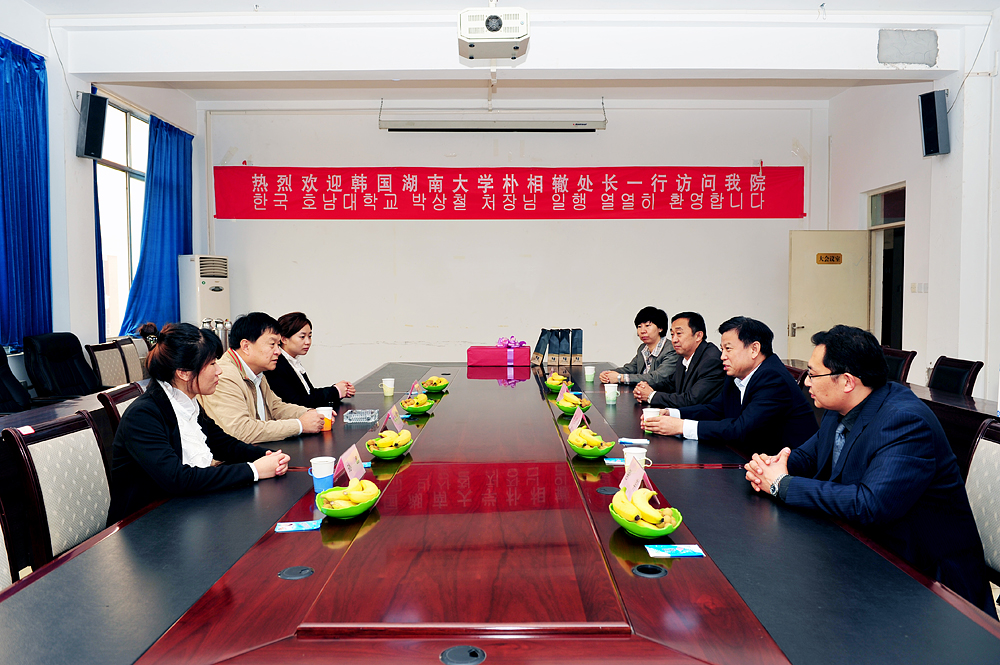 學院黨委書記劉邦治、副院長馬慶渭在學院會議室與客人進行了親切會談。在提到中韓合作辦學項目時,劉書記指出,近年來,學院一直把對外合作辦學作為提升學院核心競爭力的重要舉措。作為提升學院內涵建設的主題之一,學院有信心也有能力把中韓合作辦學項目辦好、辦大、辦強。馮院長表示,韓國湖南大學將一如既往地支持學院對外合作項目,并祝愿雙方合作水平更上新的臺階。