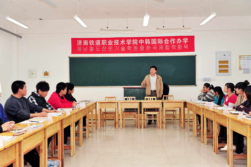 10月21日下午,韓國湖南大學中國校區副院長馮蘇齊代表韓國湖南大學來濟南鐵道職業技術學院為中韓合作班舉行贈書活動。學院黨委書記劉邦治、副院長馬慶渭親切會見。