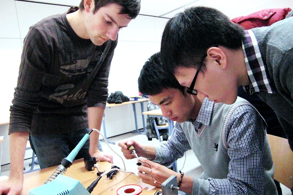 訪問交流期間,學院師生受到了德國蘭德舒特高等技術學院的熱烈歡迎,六位學生按照一對一安排住進了德國學生的家中,近距離了解德國大學生的家庭、學習、生活情況。在參觀蘭德舒特高等技術學院實操車間、實訓機房過程中,學院師生切實感受到德國對高等職業教育的重視,感觸到德國實訓設備的先進和實訓人均設備占有優勢,感悟到機械制造強國“雙元制”職業教育魅力。為加深學生間交流互動,中德雙方還共同設計、生產、裝配、調試完成了象征友誼的“旋轉式兩省地圖”,使兩省地圖既能公轉又能自轉。
