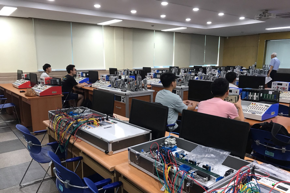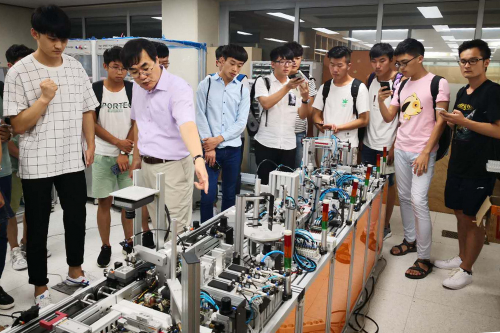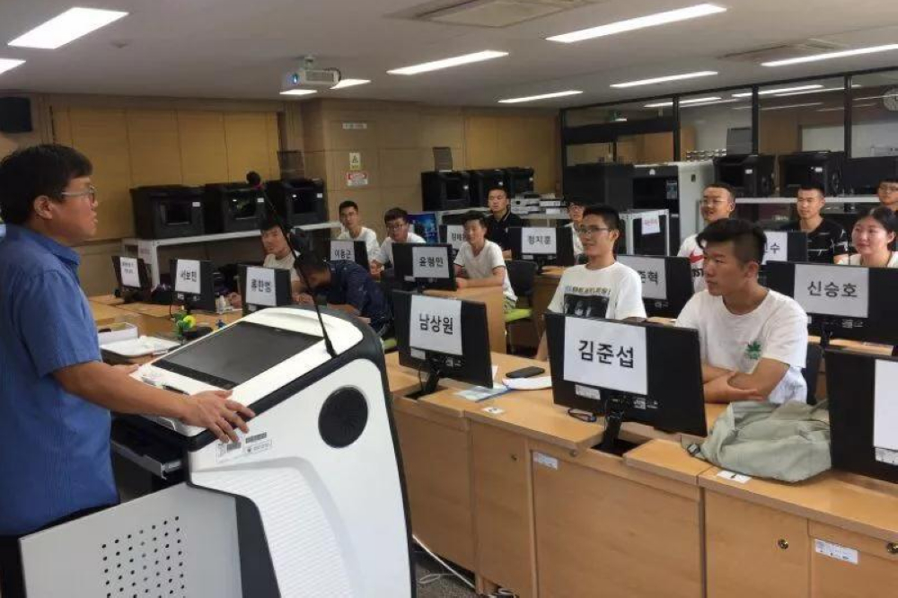 此次赴韓交流的15名學生來自學院鐵道車輛與機械工程系、鐵道機車與機電裝備系和鐵道供電與電氣工程系,他們被分為機電機械組和電氣組,分別在校內實訓室和校外企業開展專業技能學習實訓和文化交流。機電機械組學生在嶺南理工大學校內實訓室學習了CAD和soildworks建模軟件,熟悉軟件開發過程及設計形態,通過裝配圖設計案例,學習使用軟件、制作裝配視頻,并了解建模軟件與3D打印機的操作關系。電氣組學生在實訓室實訓PLC(可編程邏輯控制器)課程,學習對LG系列的PLC進行編程和控制,掌握了PLC的基本編程方法和遠程控制PLC時使用CimonD提供HMI(人機接口)的方法,對PLC的編程和應用場景有了深刻認識。