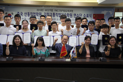 學習交流期間,師生們還參觀了嶺南理工大學多個實驗場所和浦項POSCO制鐵公司、韓國現代汽車公司,學習韓國文化課程,利用周末參觀海印寺,受邀與韓國學生共進特色美食。一系列豐富充實的交流互動,中韓師生也結下了深厚友誼。在結業儀式上,嶺南理工大學副校長李在勇為學生們頒發了結業證書。
