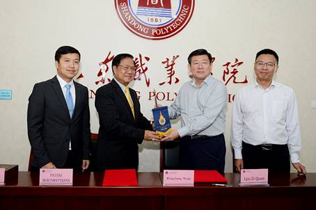 9月19日,泰國皇家理工大學(蘇旺那蓬)校長派曉布林瓦達納(PAISAL BURINWATTHANA)、副校長彭威武迪威利亞(PONGWIT WUDHIWIRIYA)一行16人到我院訪問交流,黨委書記王榮昌、副院長郭鵬會見來賓,國際交流與合作中心主任呂子泉陪同會見。