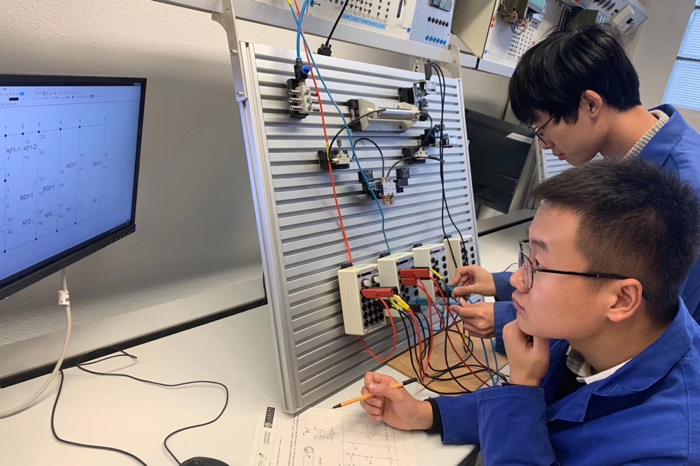 交流期間,師生參觀了蘭茨胡特最大的綜合技能學校,深入學習德國主流職業教育經驗、最新的職業教育理念、教育技術發展趨勢、教育技術應用的先進經驗、教育技術最新應用案例。參觀了GEWO與寶馬公司,學習工業4.0時代機器人與智能制造技術在制造類專業的應用,更好了解了生產技術對現在和未來的需求。深入德國課堂,與德國學生共同學習電氣課程,重點學習了由蘭茨胡特機械學校副校長Postruznik Stanislav講解的德國電氣繪圖步驟及繪圖軟件的使用方法。與德國師生共同完成了小型鋸床的設計與加工項目,進行了金屬加工比賽與自動化設計比賽,我院學生獲得1個一等獎,2個三等獎。