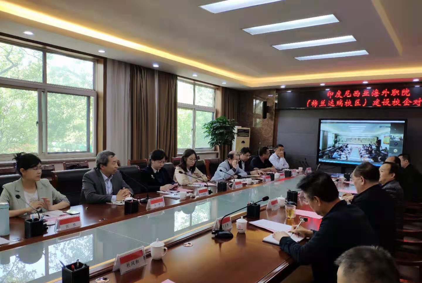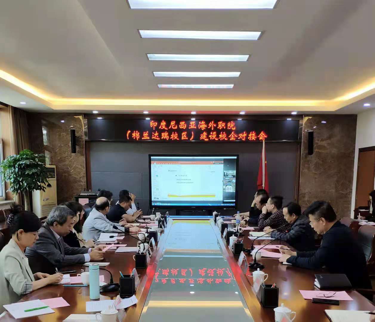 5月7日下午,副院長郭鵬赴山東科技職業學院參加印度尼西亞(棉蘭達瑞校區)海外職院建設校企對接會。有色金屬工業中心培訓處處長趙麗霞,山東科技職業學院、山東水利職業學院、山東醫學高等專科學校、中國有色礦業集團相關負責人通過線下、線上相結合的方式進行對話交流。我校國際交流學院、智能制造學院和土木工程學院的負責人一同參會。