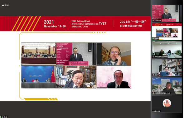 本次會議由中國職業技術教育學會、中國發展研究基金會、教育部職業技術教育中心研究所聯合主辦,以“開放·合作·共贏——共同構建人類技能共同體”為主題,匯聚了來自36個國家和地區的政府部門、院校機構、行業企業800余名領導嘉賓、專家學者齊聚“云端”,共商職業教育在服務“一帶一路”和人類命運共同體建設中的使命與擔當,凝聚廣泛共識,發布了《“一帶一路”沿線國家職業教育概覽》《“一帶一路”職業教育發展報告》。會議指出,要根植“一帶一路”國際合作的沃土,堅持開放、合作、共贏的理念,通過人類技能共同體的建設,為人類可持續發展、為“一帶一路”沿線國家和地區經濟增長,合作協力貢獻力量。