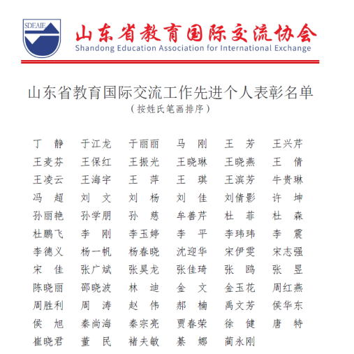 喜報!我校教師獲2021年度“山東省教育國際交流工作先進個人”稱號