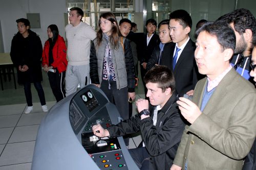 為確保此次認知實習取得良好效果,學院前期為學生講解員和志愿者進行了專業英語培訓,并安排“雙語”教師在各實驗實訓場所做好講授。在機械制造工藝實訓車間、自動化生產線實訓室、數控銑床裝調實訓室,在現代通信技術綜合實訓基地、SMT實訓室、鐵路施工技術實訓場,留學生們認真觀察、詳細了解各實訓設施設備性能及工作原理,對“教學做”一體化課堂環境贊不絕口。在機器人創新實訓室,留學生們對中國學生制作的機器人產生了濃厚興趣,躍躍欲試操作控制。在軌道交通綜合實訓中心,留學生們被城軌實訓車吸引,在專業教師的指導下,操作模擬駕駛系統,學習駕駛工作流程。認知實習期間,留學生們還品嘗了食品加工技術專業學生親手制作的糕點、老酸奶等美食,感受中華飲食文化的博大精深。實習結束前,兩校學生依依惜別并拍照留念。