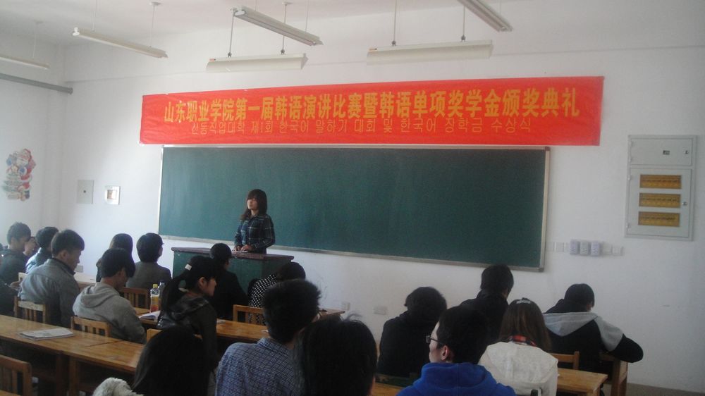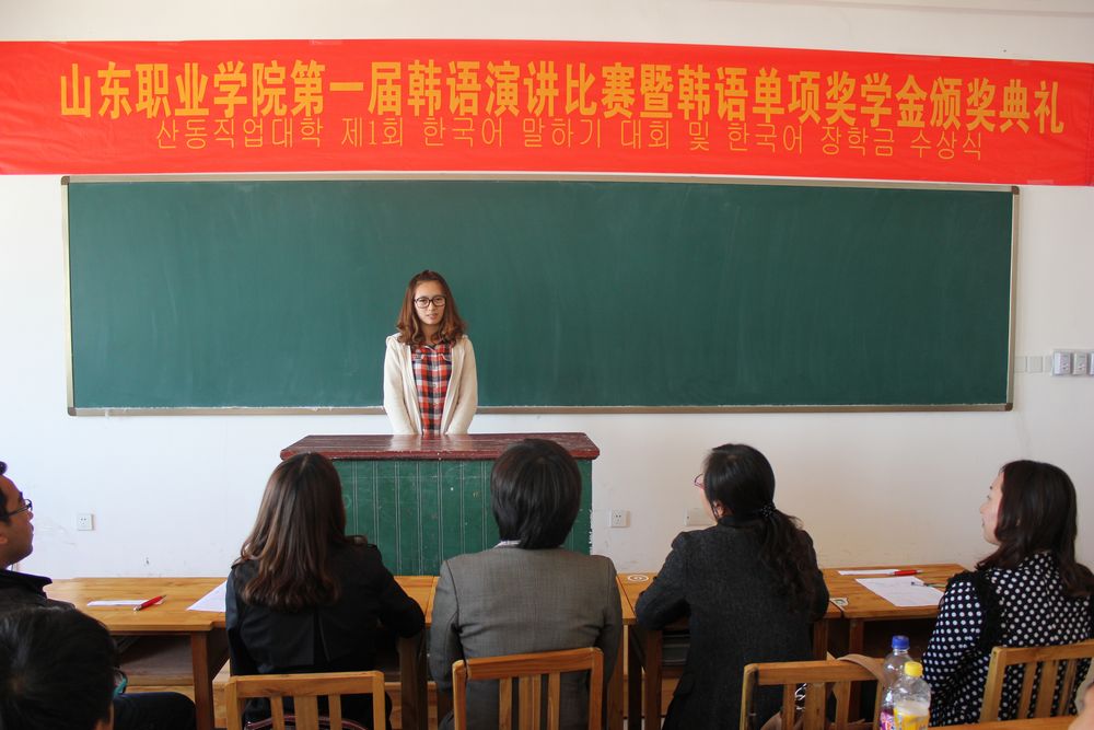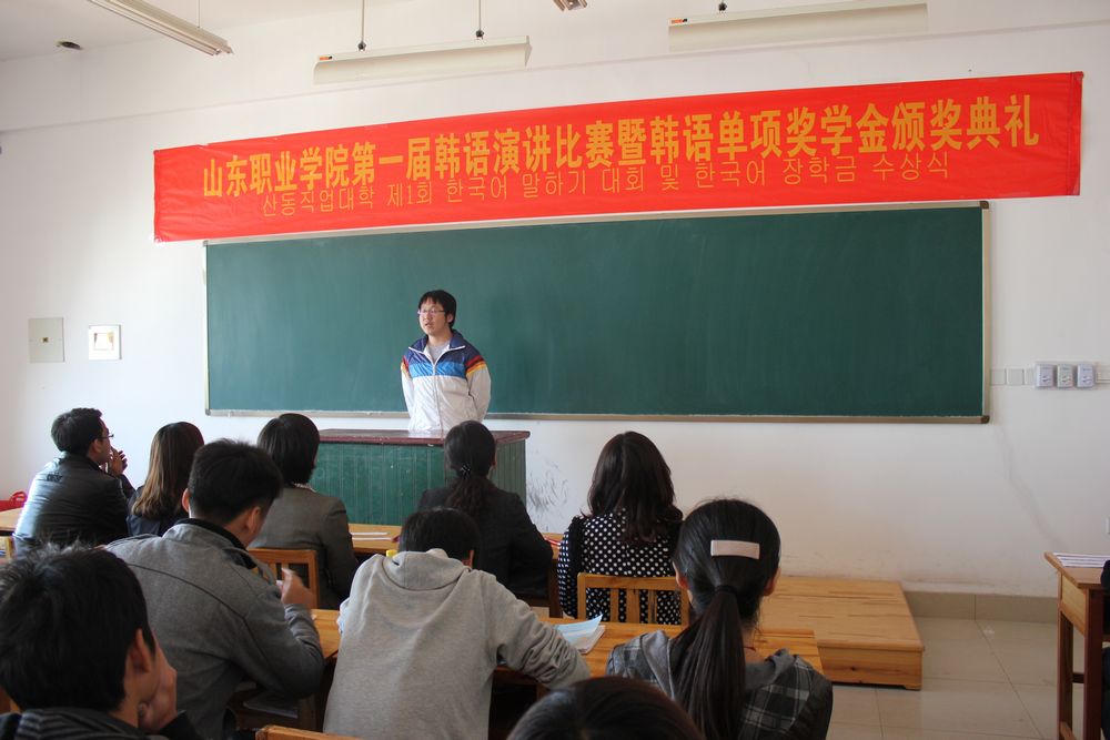 為激發中韓班學生學習韓語的熱情,掀起學習韓語的新風潮。同時為同學們提供一個展示自我風采的平臺,10月31日,國際交流中心舉辦了山東職業學院第一屆韓語演講比賽暨韓語單項獎學金頒獎典禮。