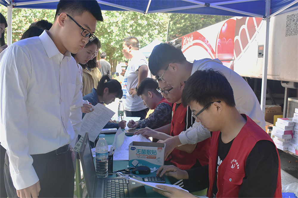 活動中,我院老師率先垂范,學生工作處楊榮濤老師、劉林老師、魏小龍老師,生物工程系李啟迪老師、鐵道運輸與財經管理系張錦老師等紛紛利用工作間隙前來獻血,起到了良好的示范作用。廣大同學更是積極參與,獻血車前排起長長隊伍,獻血大巴內人頭攢動。