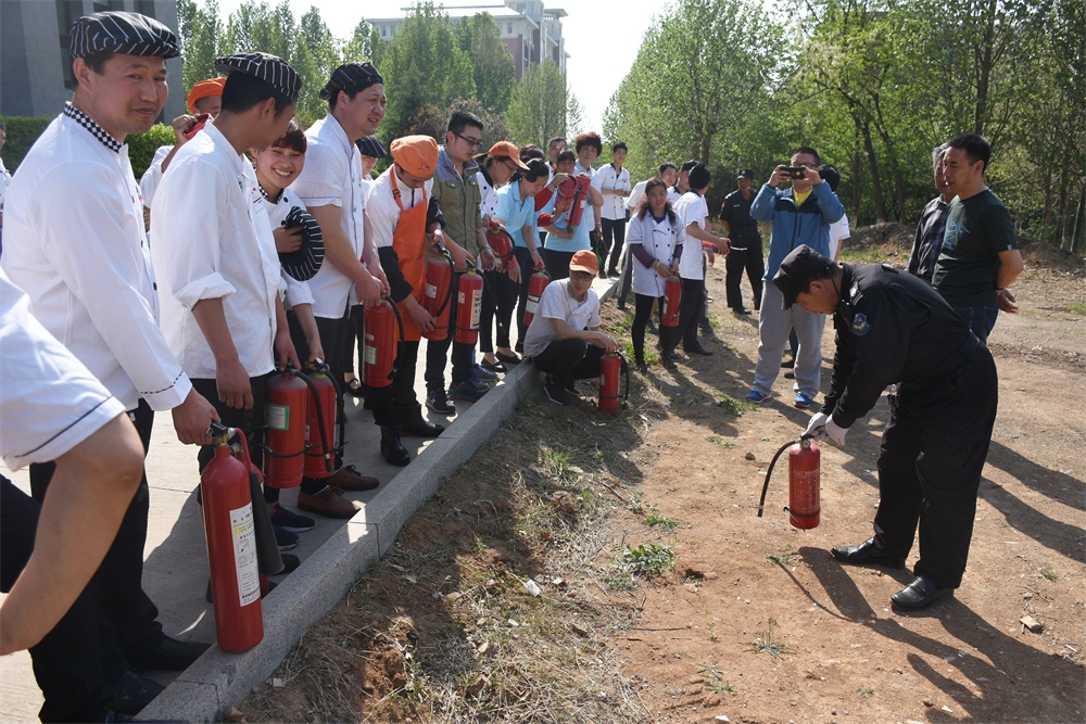 4月20日,安全保衛處對食堂從業人員進行了消防培訓及演練活動。副處長劉禮寬向大家介紹了消防安全“四懂四會”和“四個能力”的內涵,一般火災發生的原因與預防,電器起火、油鍋起火、排煙罩起火等不同火災的撲救方法,滅火的最佳時機、逃生疏散及火災報警方法。李鐵軍主任和負責消防安全的保安人員向食堂員工及物業人員詳細介紹了滅火器的使用步驟及運用技巧,并現場演示了滅火器使用的操作流程。在安保處工作人員的指揮下,分組進行了滅火器使用演練活動。