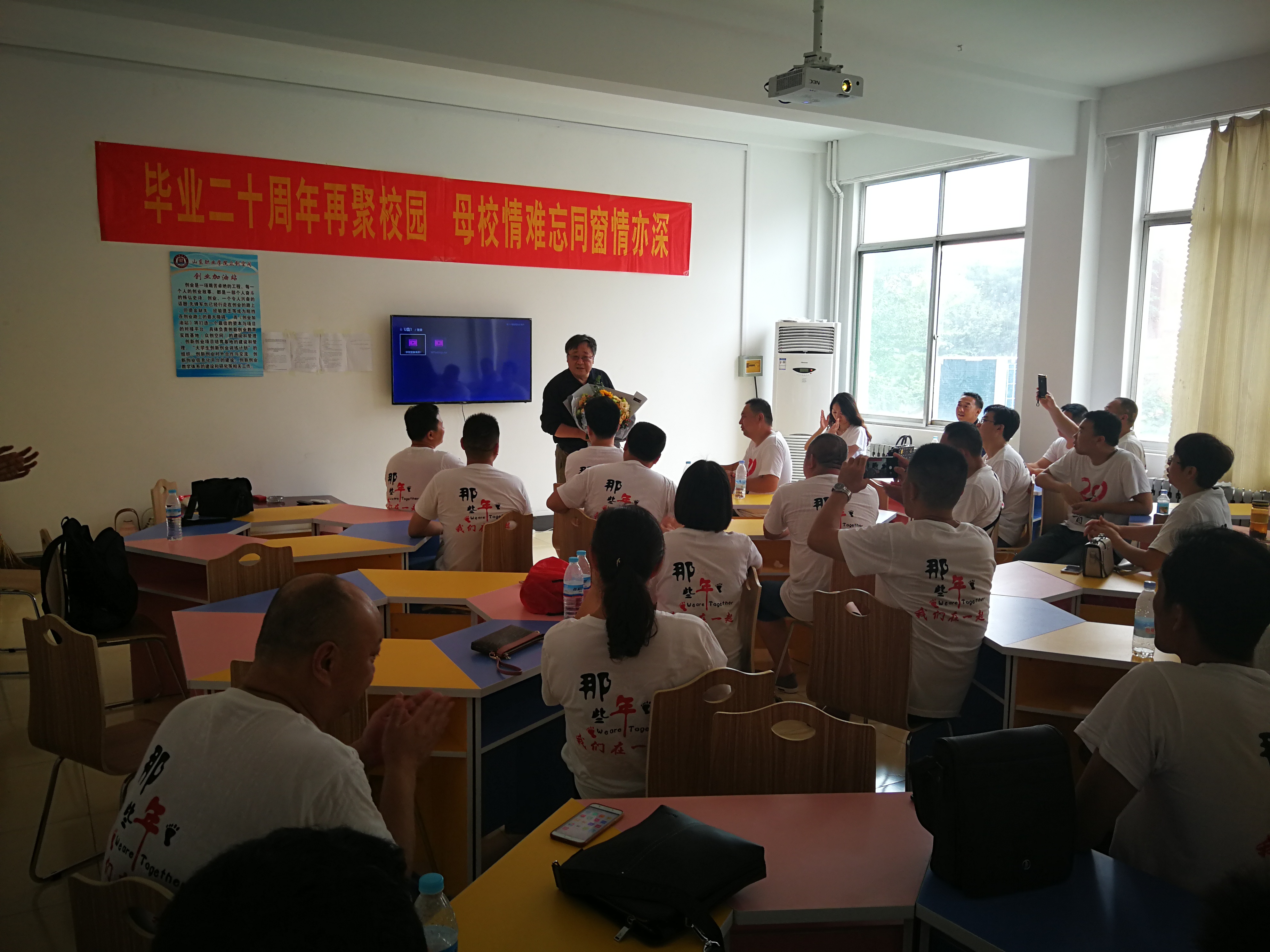 8月5日,94級車輛75班30名校友相約返回畢業20周年的母校山東職業學院,共敘光陰的故事,共話美好的未來。二十年滄桑巨變,山東職業學院迎來了翻天覆地的變化,校友們在招生就業處魏鵬的陪同下參觀了校園環境及學院實訓場地,對學院美麗的環境、先進的實驗實訓設備贊嘆不已,紛紛慨嘆母校的巨大變遷,真心為母校的發展進步感到開心與自豪。