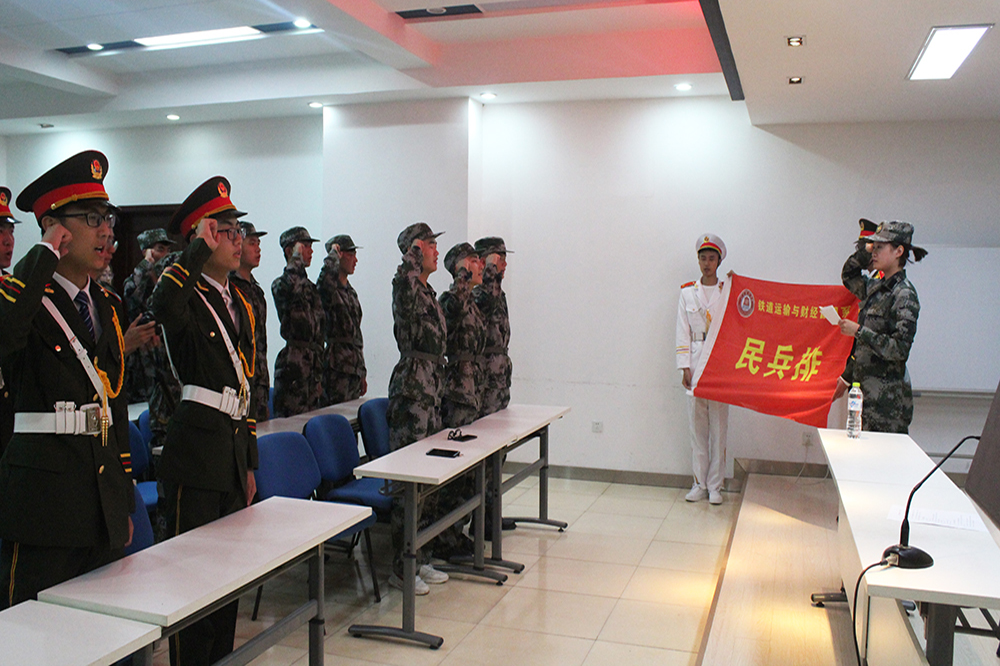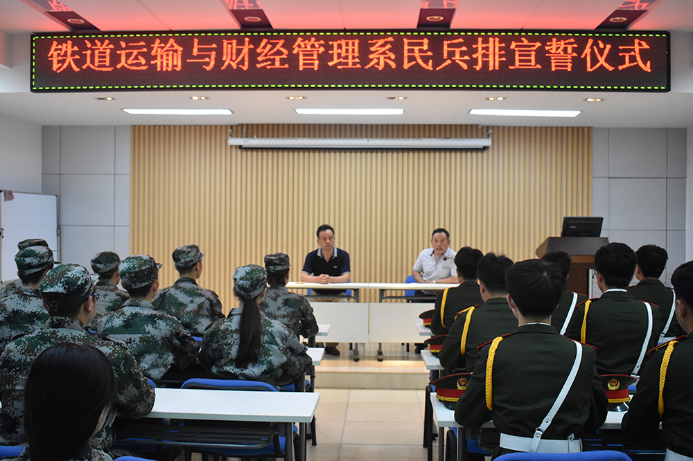 為增強學生國防觀念和國防意識,6月26日,鐵道運輸與財經管理系舉辦民兵排宣誓儀式。黨總支書記呂鵬、學工辦主任欒金志參加活動。