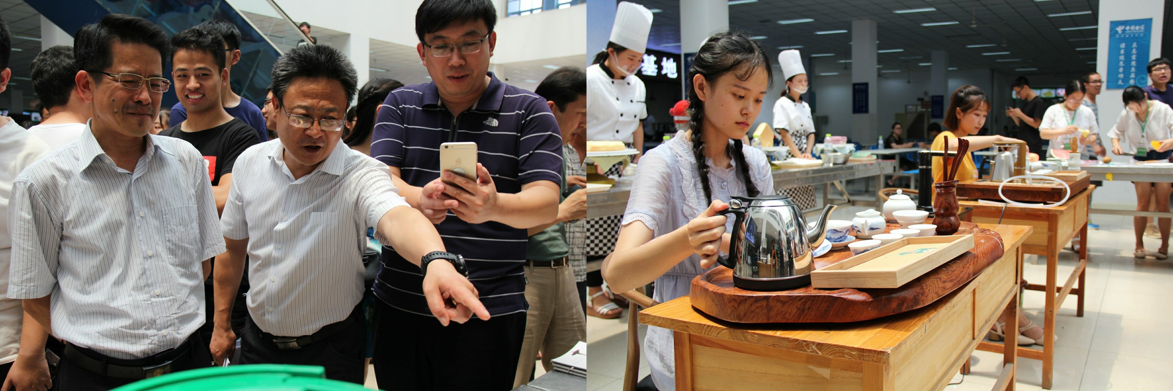 6月21日中午,我院第九屆食品文化周系列活動持續進行中,學院院長秦河、學生工作處處長兼團委書記王偉、生物工程系黨總支書記王廣勇來到活動現場。