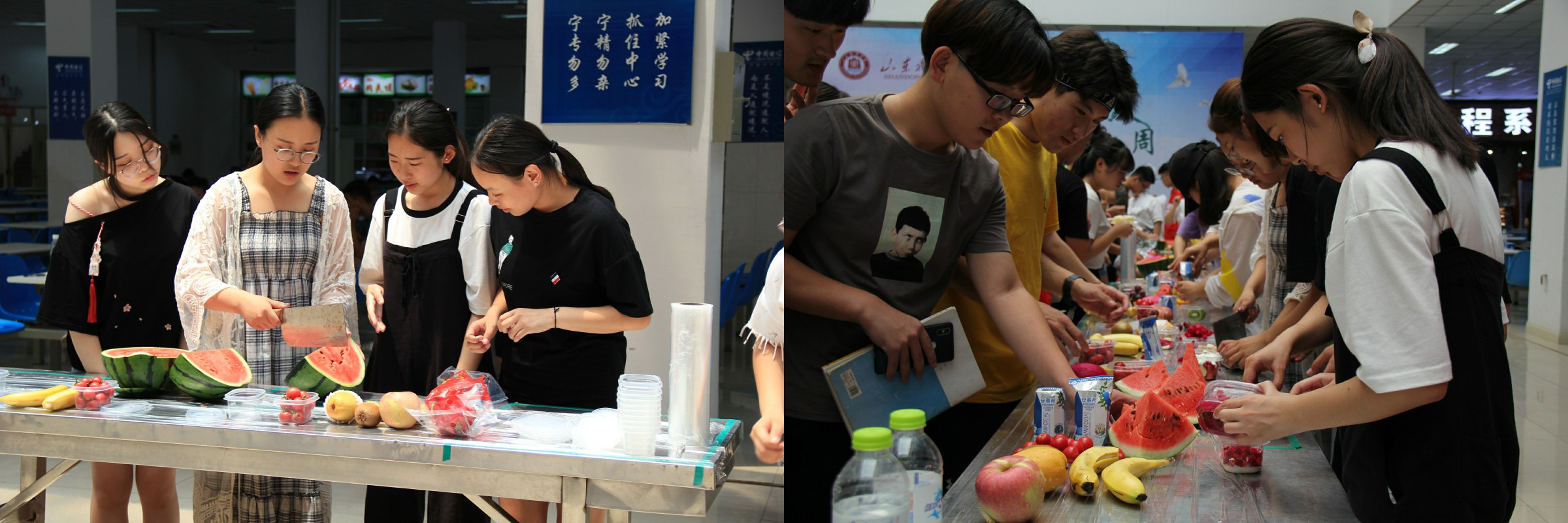 今天活動的主題是“秀技能、展風采”,生物工程系學生現場進行了蛋糕裱花、水果拼盤制作、茶藝表演等技能展示,活動現場氣氛熱烈,選手們盡情發揮創意,精雕細琢。他們或切、或拼忙得不亦樂乎。蛋糕、奶油、西瓜、蘋果、芒果、香蕉等各種食材,在選手們的創意下,拼放成各種圖案,作品色彩艷麗、精美絕倫。同學們細心謹慎、嚴謹規范的操作,讓一件件精美的創意作品展示在師生眼前。優美的樂曲、美輪美奐的表演,讓廣大師生沉浸在美食美味的誘惑中,忍不住伸出手、張開嘴,享受美食的盛宴。