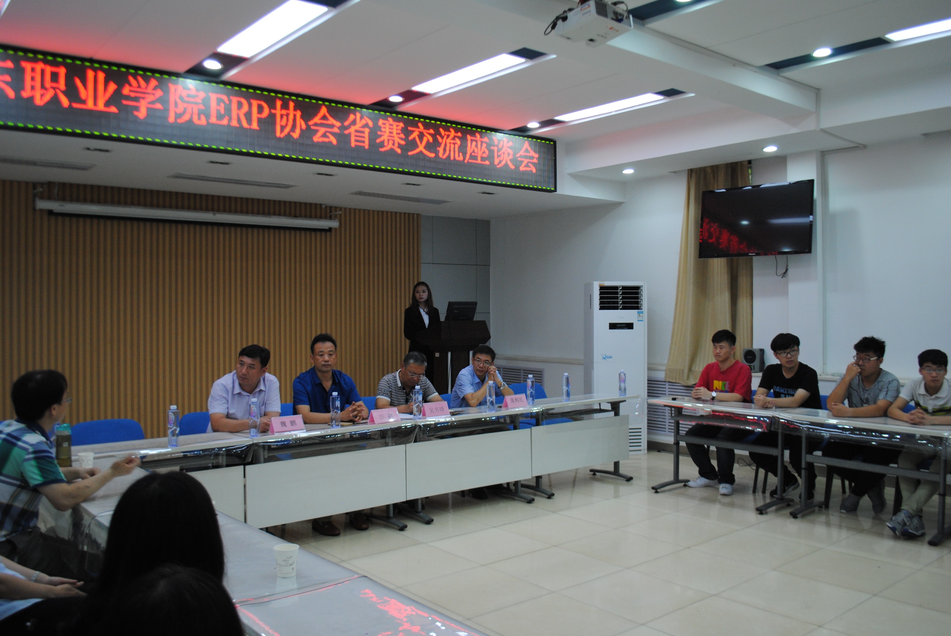 6月13下午,我院ERP協會召開了省賽交流座談會。學院招生就業處副處長魏鵬、鐵道運輸與財經管理系書記呂鵬、主任吳書峰、副主任張利民出席會議,ERP協會指導教師兼大賽指導教師屈寰昕、大賽指導教師張宏以及協會全體成員參加了本次座談會。